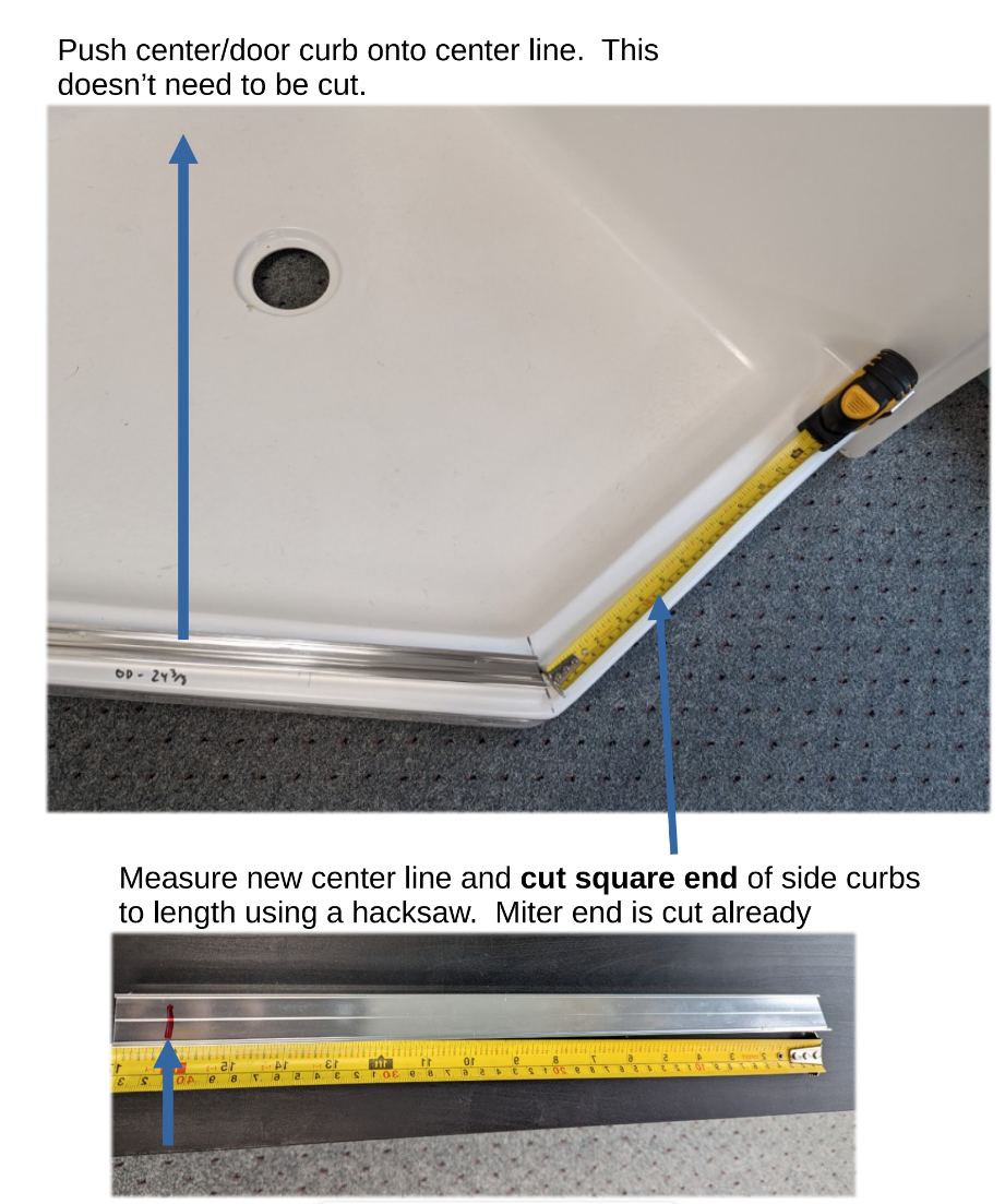 - If your shower door will be replacing an existing shower door it's possible there are existing stains and holes already for wall jambs. This means you may want to adjust where exactly you want the curb and wall jambs to sit versus the exact center line